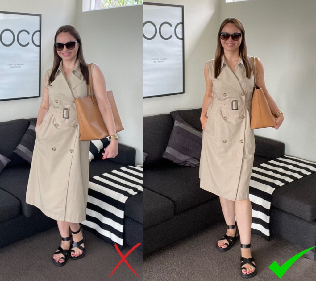 Take a look at these images I’ve put together for you to illustrate my point. Here you can see my midi trench dress with different length points.