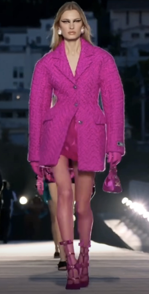 Although not entirely, as the shoulder lines are still remaining broad and oversized there is no doubt that the waists are getting smaller as we have seen it on major runways in 2023 (as per Versace 2023 runway images you can see here).